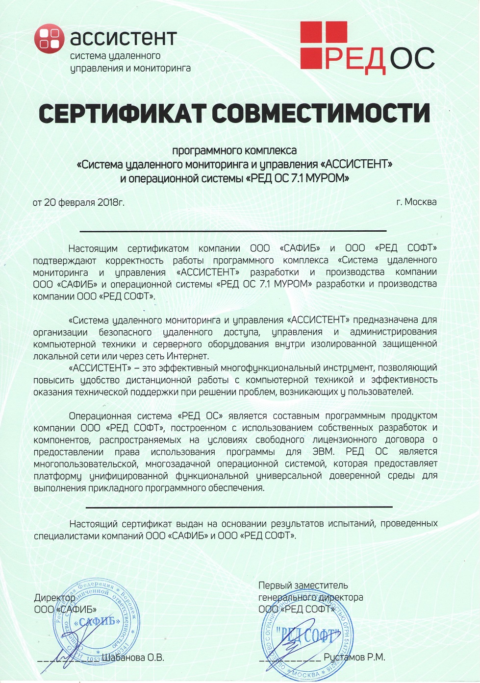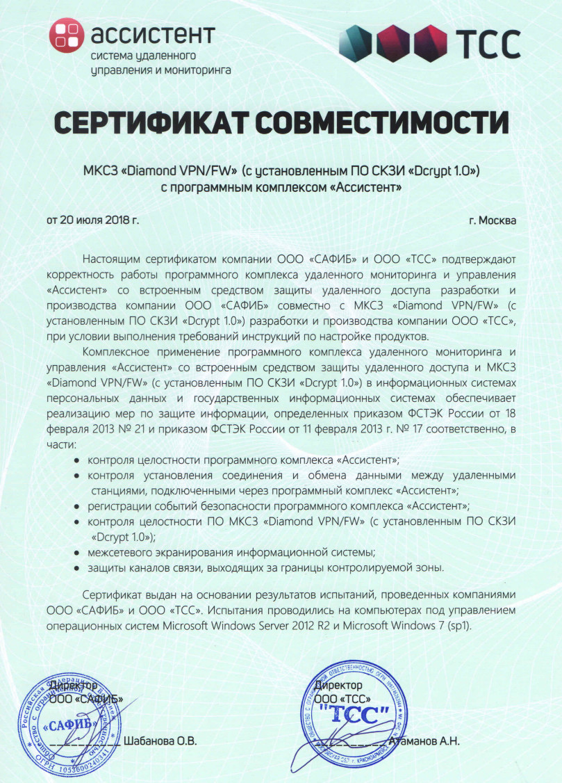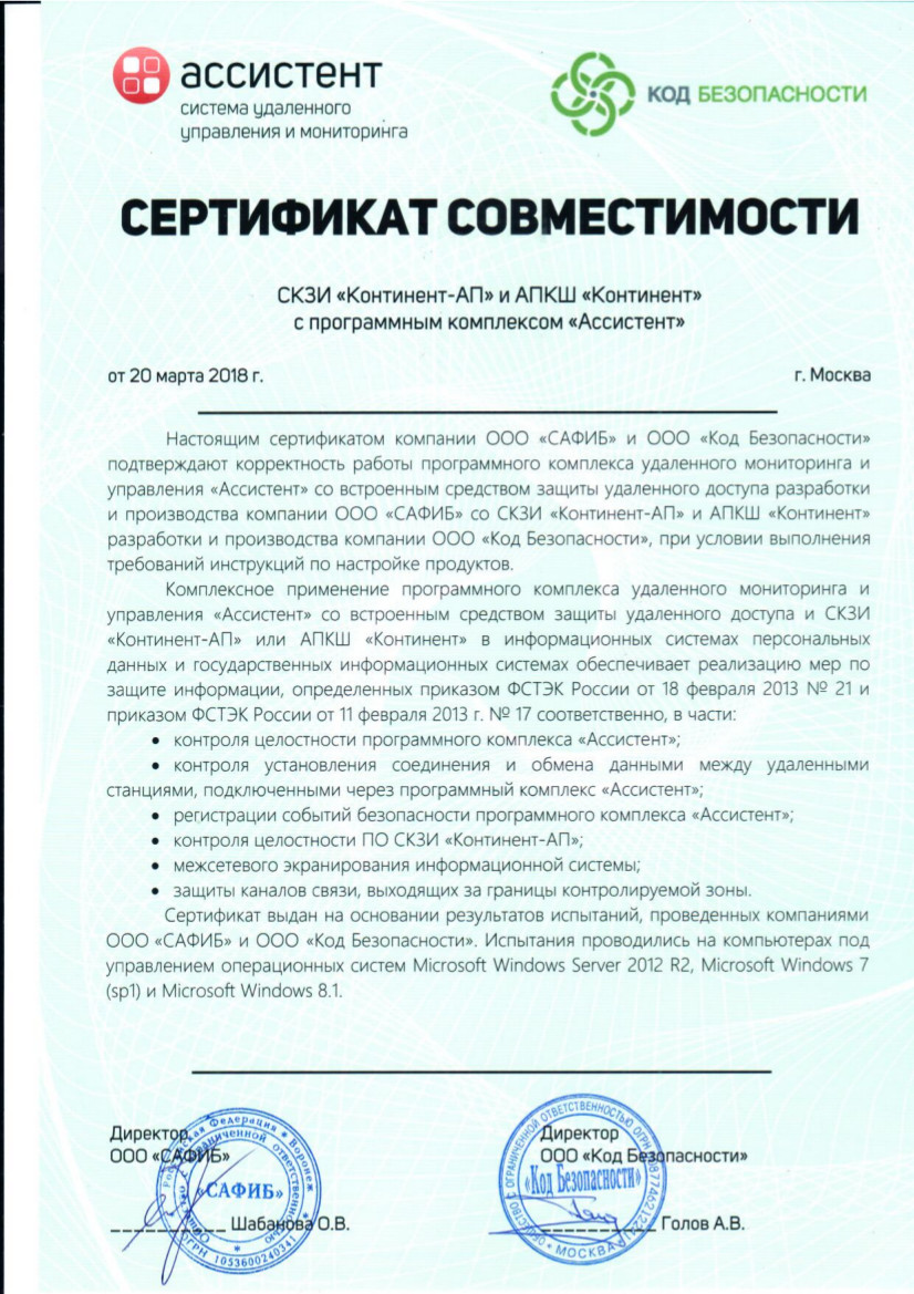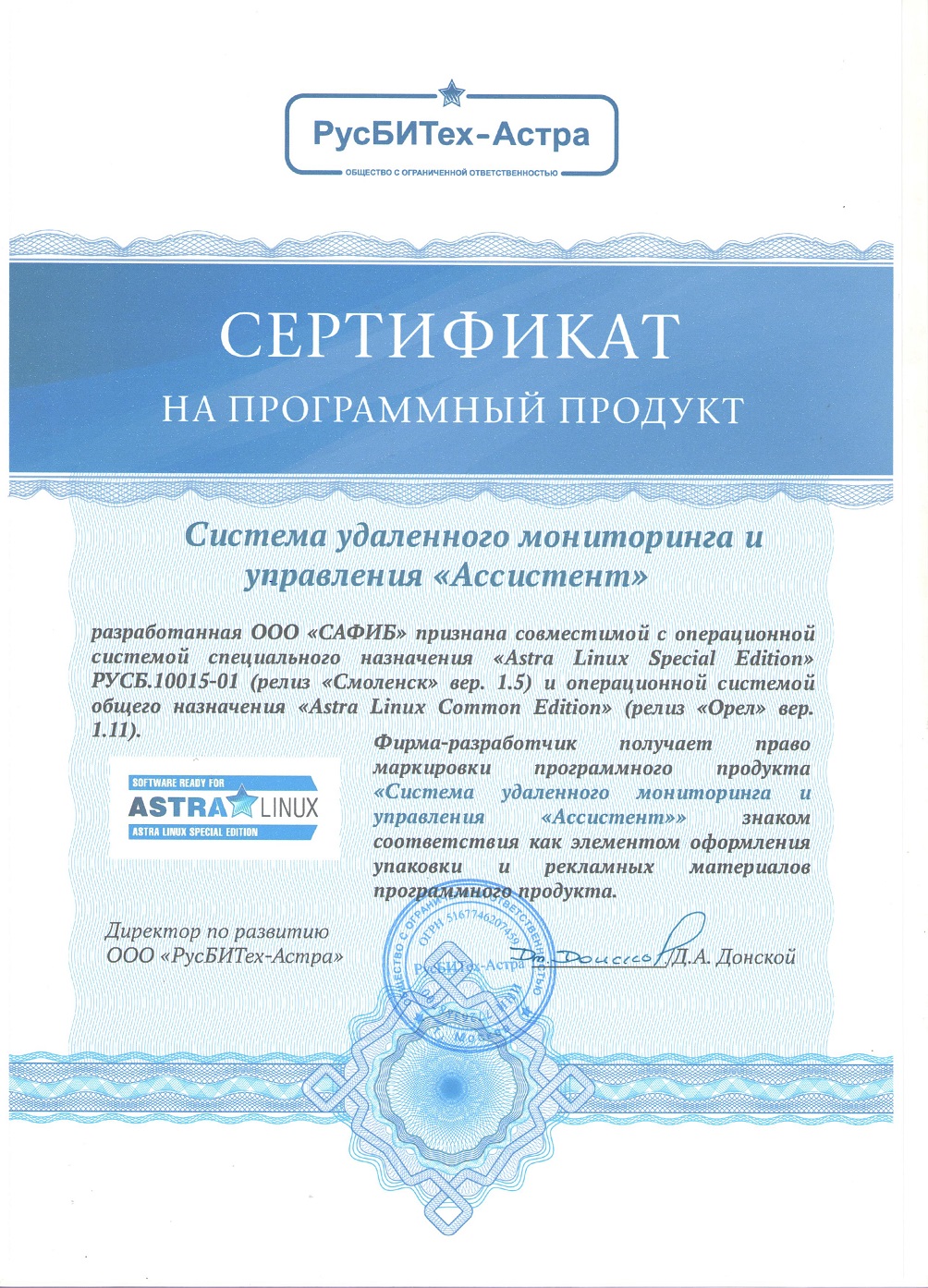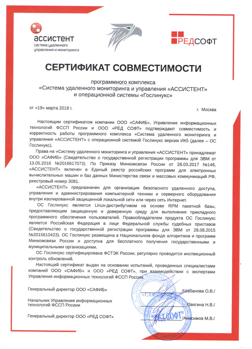 Компания САФИБ уделяет особое внимание подтверждению совместимости с программными продуктами и аппаратным обеспечением сторонних производителей. Это позволяет гарантировать работоспособность программного комплекса АССИСТЕНТ совместно с продуктами наших партнеров, что подтверждается проведением испытаний.